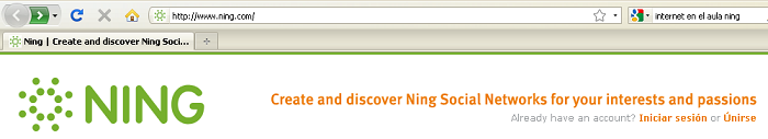 Para evitar la aparición de más avisos de los necesarios, es conveniente estar registrados en Ning y haber iniciado sesión alguna vez desde la página principal (http://www.ning.com/).