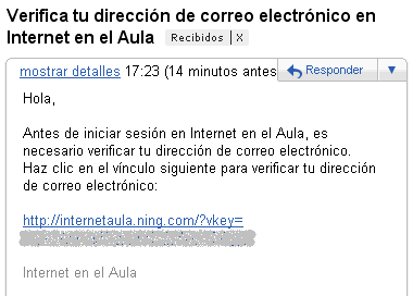 Algunas funcionalidades de Ning han cambiado recientemente. En algunas ocasiones se solicitaba una verificación de la dirección de correo electrónico.