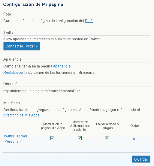 En este momento se puede Retirar la solicitud o Continuar. Seleccionaremos Continuar y aparecerá la página principal de la red Ning Internet en el Aula.