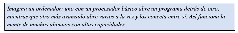 Hablar de altas capacidades es hablar de una forma distinta de ser, pensar y sentir. No se trata de un adjetivo que se añade a un niño porque saca buenas notas, ni de un “privilegio” académico. Es, en realidad, un modo diferente de funcionar a nivel cerebral y emocional. Parten de un cerebro distinto y por tanto perciben, procesan y responden al mundo que les rodea desde su propia neurodivergencia.